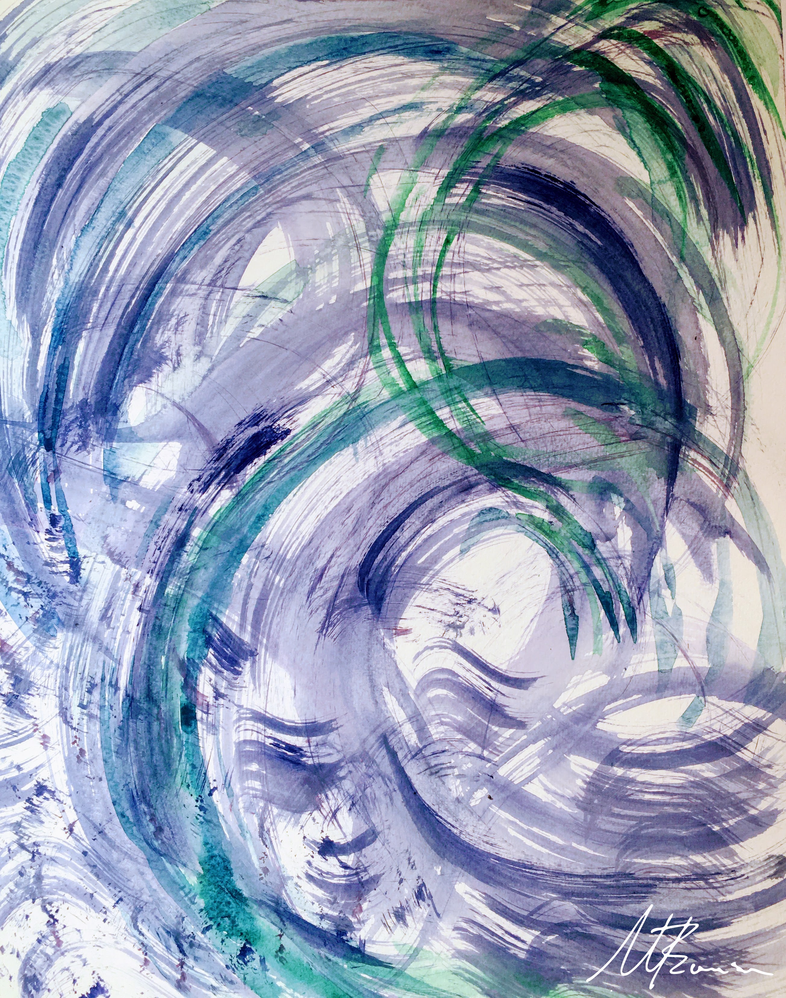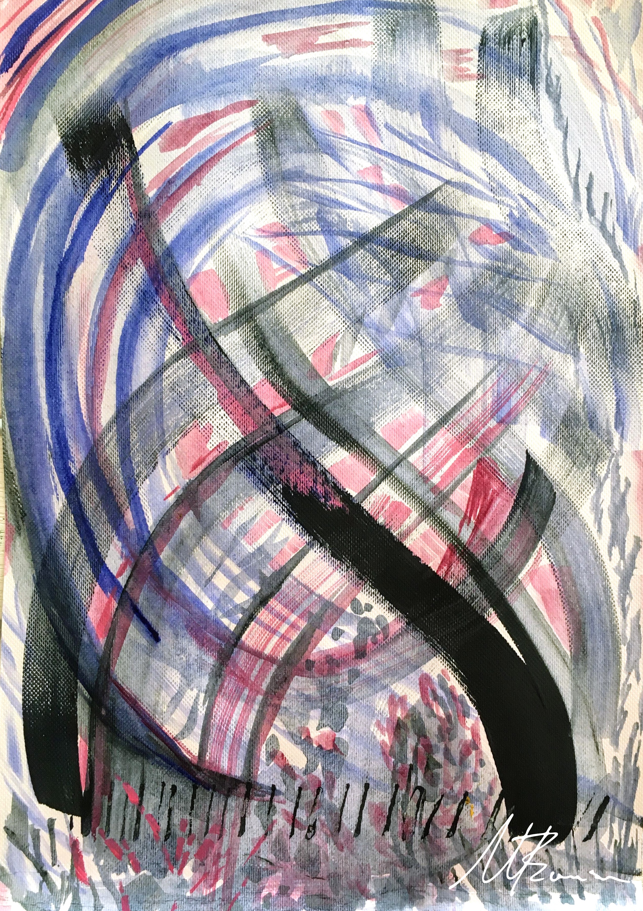 ©️ 2020, M.Thomson ,Going with the Flow. Acrylic on paper, 11.7 H x 8.3 W in (29.7 x 21 cm) (A4)