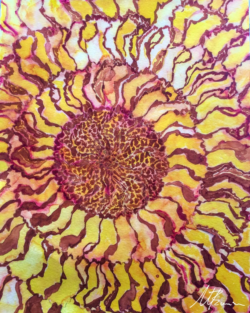 ©️ 2021, M.Thomson, Internal Eternal Sunflower, Mixed media on Impasto paper 400 gm/2, 16.1 H x 12.6 W (41 x 32 cm)