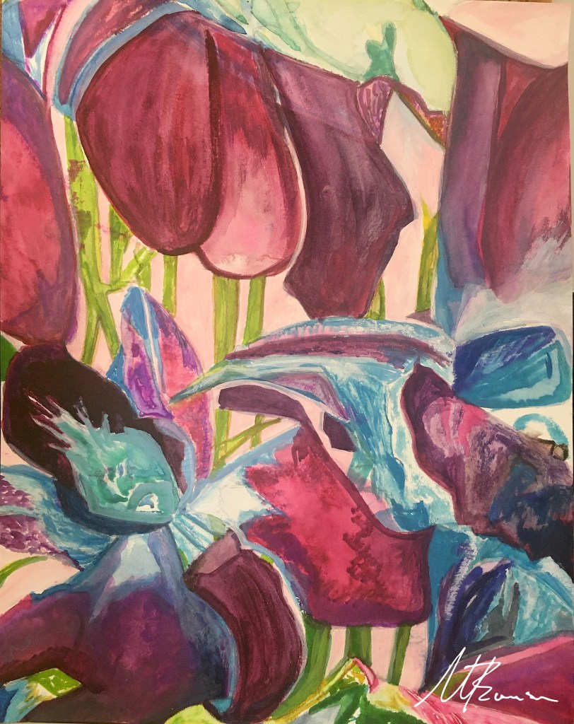 ©️ 2021, M.Thomson, Floral II Mixed media on Acrylic paper linen finish 400 gm/2, 18 H x 12 W ( 45.7 x 30.5 cm)