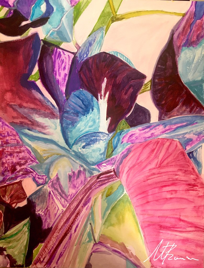 ©️ 2021, M.Thomson, Orchids of the Heart I, Mixed media on Impasto paper 400 gm/2, 16.1 H x 12.6 W (41 x 32 cm)