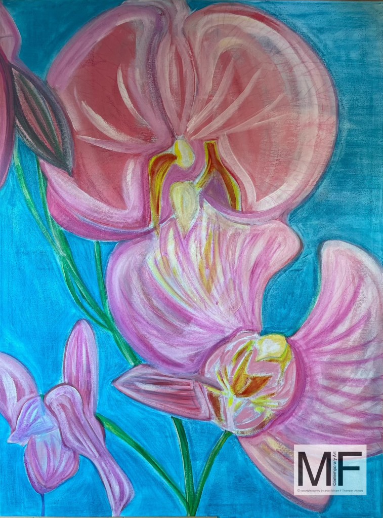 ©️2021, M Thomson, Orchid in Transition Stirrings I Mixed medium on Canvas 31.5 H x 23.6 W (80 x 60cm)