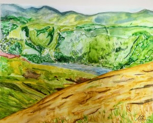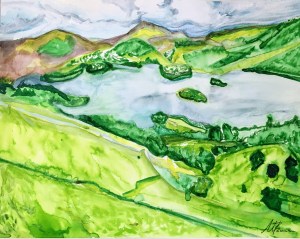 ©️ 2021, M.Thomson, Vantage Point Lake District #I, Mixed media on Impasto paper 400 gm/2, 12.6 H x 16.1 W (32 x 41cm)